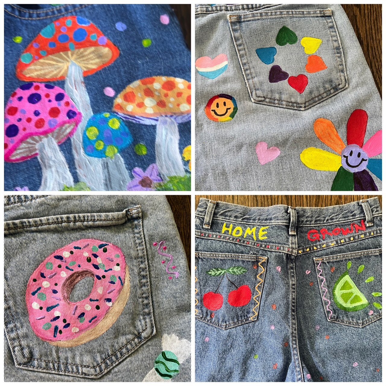 Kaylor Otwell is a visual artist and designer, with an eclectic array of artistic creations and abilities. She has been making and selling clay ornaments and artwork since 2011, and branched into abstract collage art in 2020. Right now, she is focused on upcycled, handpainted denim pieces. Kaylor is also available for interior design services and mural commissions. Check out the sections below for more info, and contact her with any ideas you want her to bring to life!